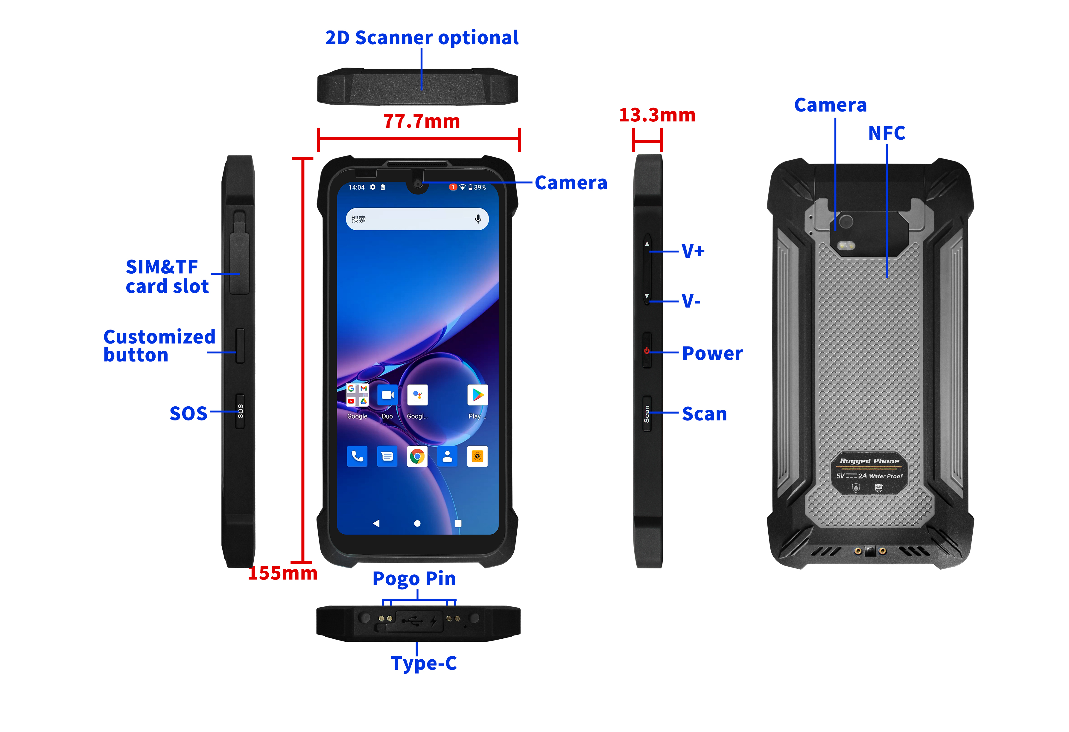 Сканирование / NFC / BeiDou / GPS, поддержка 4G / WiFi / Bluetooth.