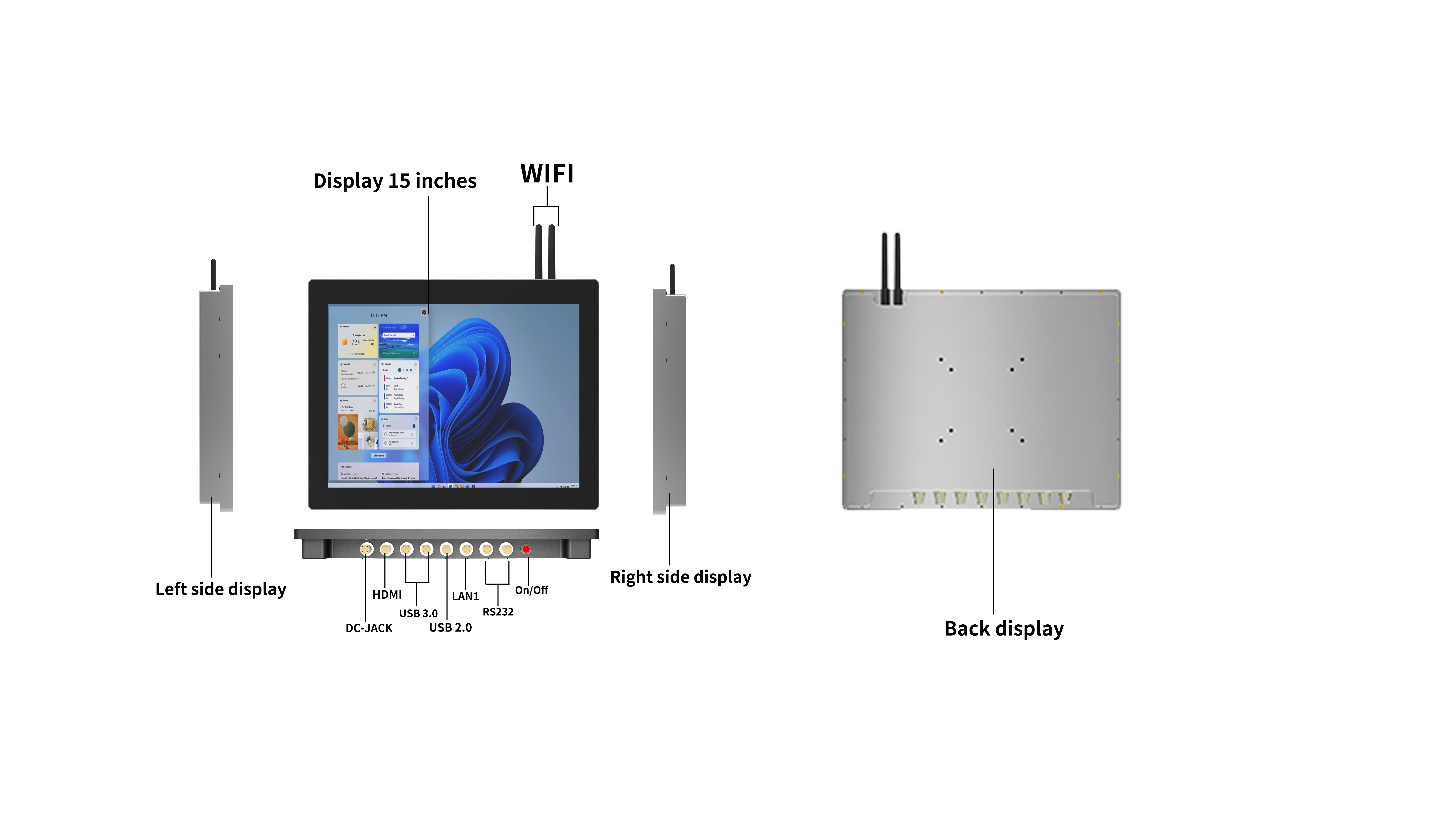Практичный многосистемный водонепроницаемый промышленный ПК: несколько процессоров (включая внутренние), 15-дюймовый HD-экран, стабильный WiFi / Bluetooth. IP65 водонепроницаемый + устойчивость к широким температурам (обрабатывает логистические / промышленные сцены). Мощность 12 В + дополнительные динамики - надежны для межотраслевой работы.